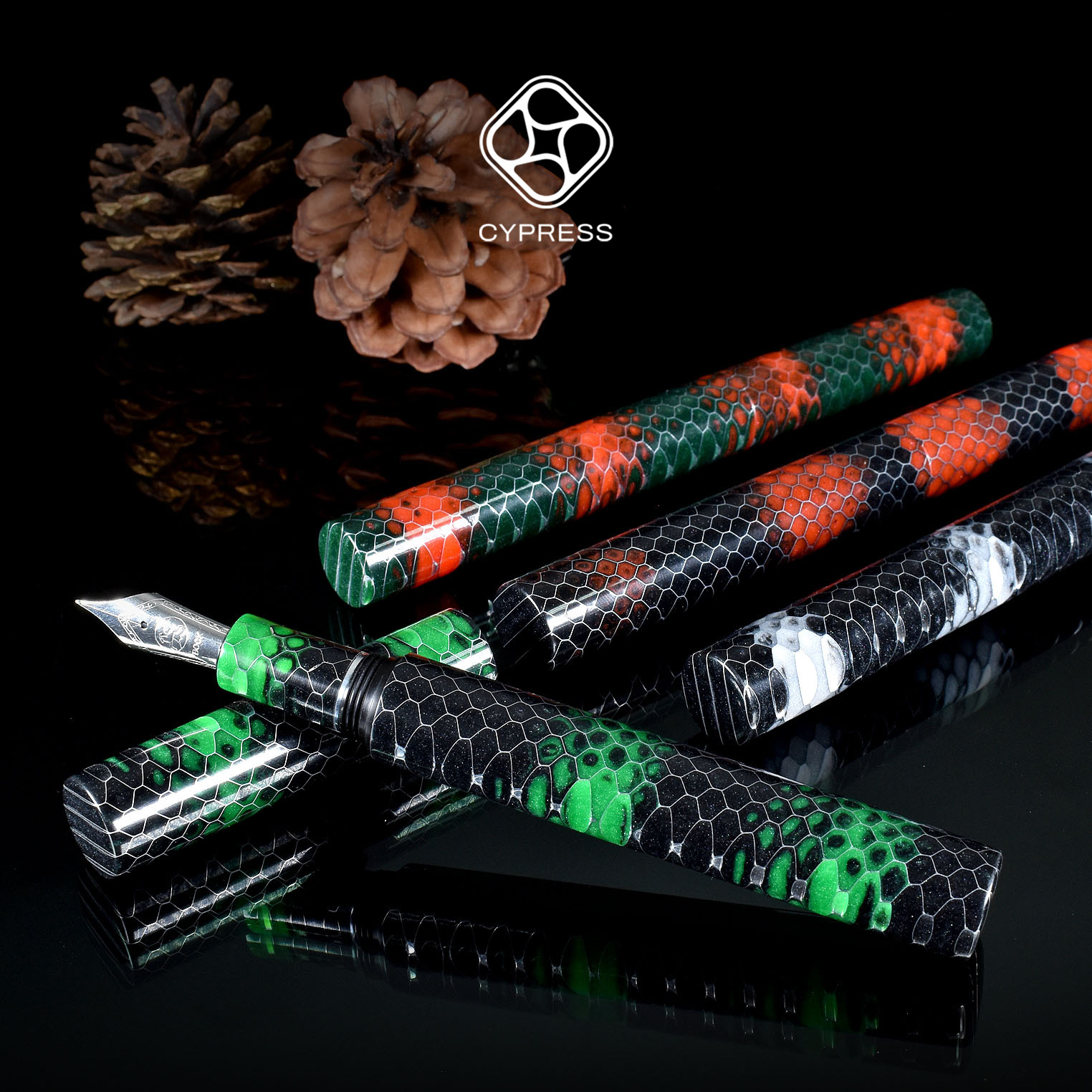 CYPRESS uses a variety of selected Conway Stewart blanks this time, matching with ebonite.Each color combination is ingenious. And the more precious part is that the middle ring is made of expensive Mokumegane. The whole pen is by handmade!