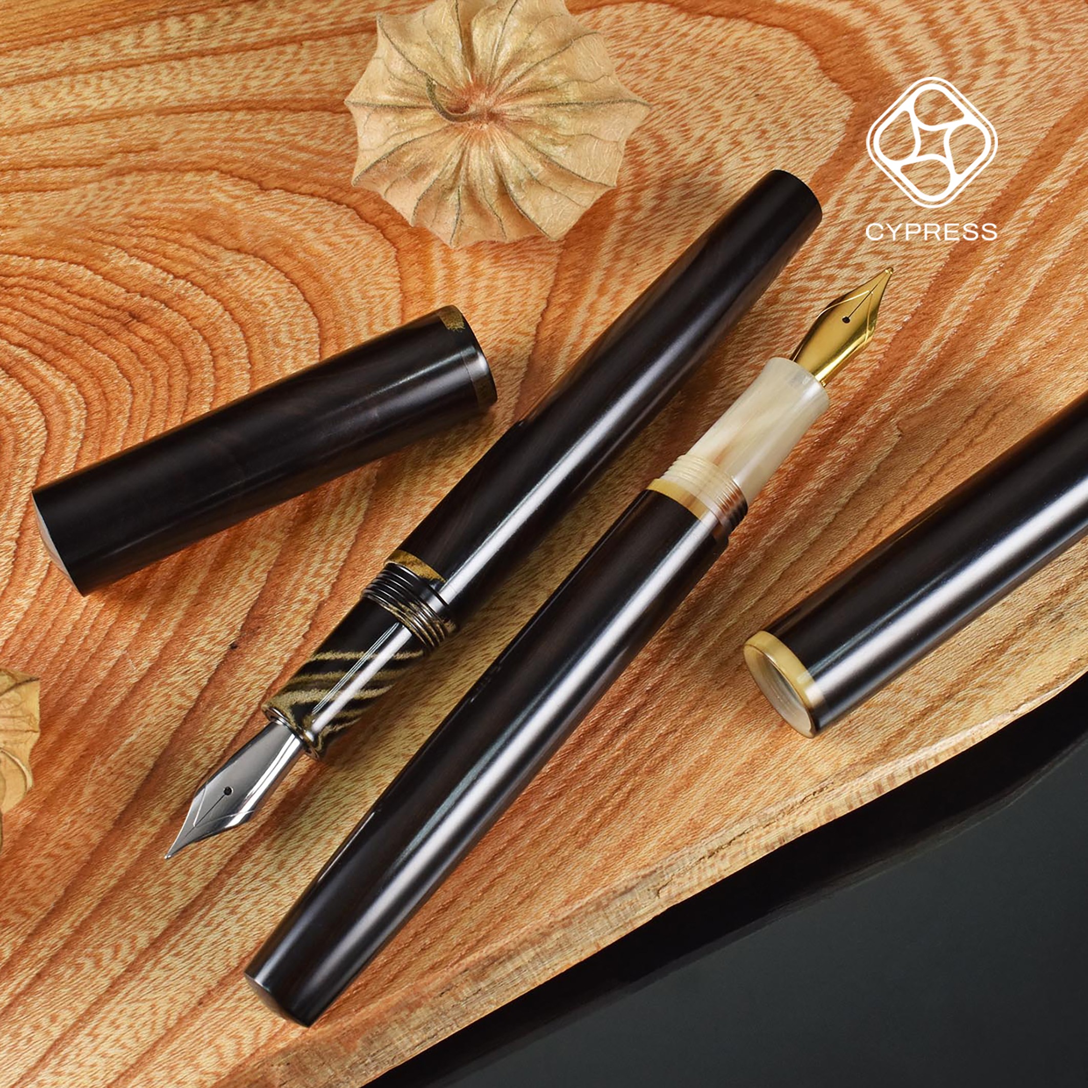 快木文創釋出數量稀少、取得不易的珍藏筆料,用大氣磅礡的筆款,分別以牛角和硬橡膠製作握位、筆蓋和筆身和中環。選取稀有珍貴的月桂瘤、金絲楠木、沙漠鐵木、微凹黃檀瘤、花梨瘤等頂級木種,筆身反覆以15道生漆包覆,保留木頭質樸的光澤,沉穩中不失幹練,完整呈現木鋼筆之美,珍貴的木料更增添收藏的價值!